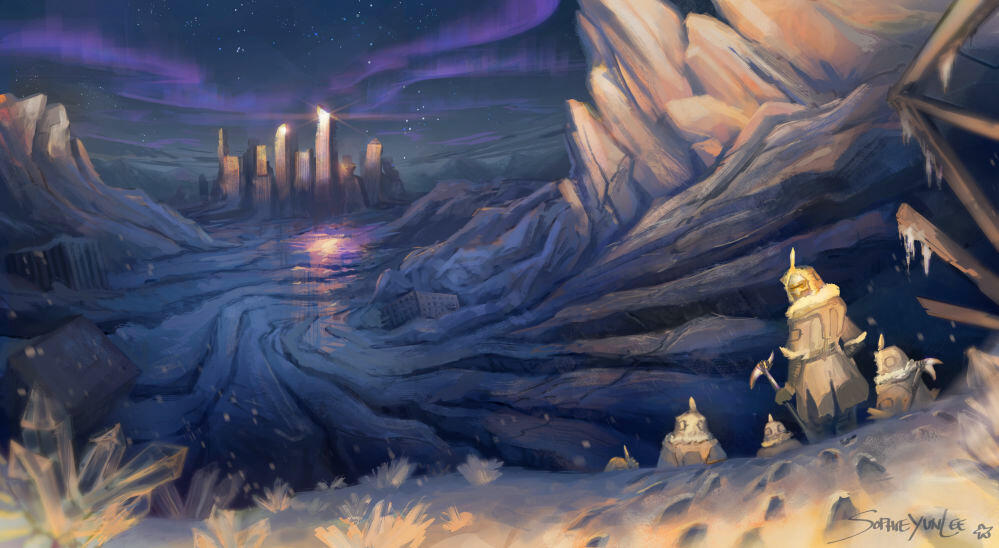 Humanity barely survives on the surface of the earth in a desolate ice age. A group of young explorers venture to structures from times before that have been frozen in the ice. The sole survivor of the young explorers reaches the lowest floors of the frozen structures. Ancient artifacts from within the earth are brought up by ice flow, showing evidence of a precursor civilization. One of them is a cave preserved by crystals and a curious artifact. Harnessing the powers from the aurora, the hero vanquishes the blizzards and ice.